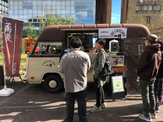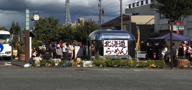 りんご並木でのイベント「ぽぉの日曜日」に出店 借り物感が漂う キッチンカー