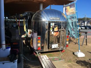 車両はマツザワのエアストリーム型を利用しているようだ 手前には親子連れが食事中